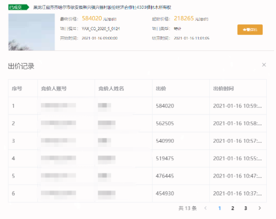 近期,齊齊哈爾市依安縣新興鎮(zhèn)興福村股份經(jīng)濟(jì)合作社4303棵林木所有權(quán)項(xiàng)目在省農(nóng)村產(chǎn)權(quán)交易平臺(tái)溢價(jià)成交。